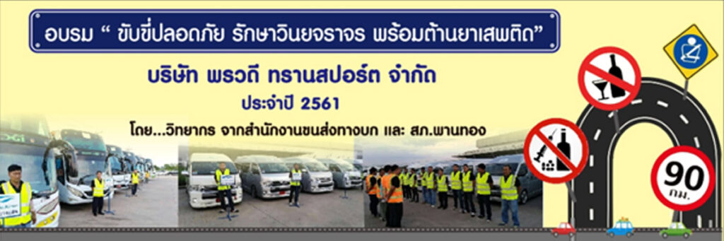 โครงการ อบรมนี้จัดให้กับพนักงานของ บริษัท พรวดี ทุกคน เพื่อให้พนักงาน ได้เพิ่มความรู้และความเข้าใจให้ตรงกัน และเพื่อเพิ่มประสิทธิภาพในการใช้ยานพาหนะได้ถูกต้องต้องตามกฎจราจร ทั้งนี้ทางบริษัทยังอบรมเรื่องการต้านยาเสพติดอีกด้วย เพื่อป้องกันไม่ให้พนักงานของเราอยู่ในกลุ่มสุ่มเสี่ยงกับยาเสพติด โดยทางบริษัท ได้ขอความร่วมมือจากสำนักงานขนส่งจังหวัดชลบุรีและเจ้าหน้าที่ตำรวจ สภ.พานทอง เป็นวิทยากรให้ความรู้ตลอด ทั้งโครงการ